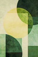 Zachte groene tinten en geometrische vormen harmoniëren in een spannende compositie die rust en evenwicht uitstraalt. De gedurfde cirkels en strakke lijnen creëren een moderne sfeer, perfect voor een stijlvolle woonkamer of een creatieve kantooromgeving. Dit kunstwerk nodigt uit om te blijven hangen en te dromen.