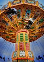 Kleurrijke kettingcarrousel in pretpark Gröna Lund in Stockholm, Zweden