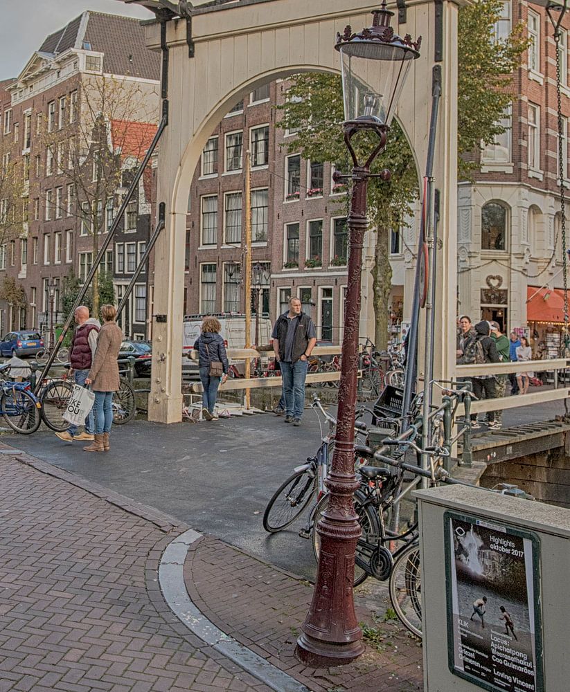 Een houten brug over de gracht van de Groenbrugwal in Amsterdam.
