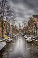 Groenburgwal in Amsterdam met zicht op de Zuiderkerk in de winter.