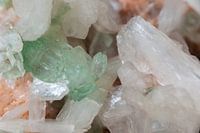 Groene Apofyliet met Stilbiet. Apofyliet in combinatie met Stilbiet is een stimuleert de intuïtie , zorgt voor balans en heeft een bevrijdende werking.