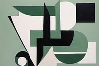 "Groene Geometrische Dynamiek" is een abstract schilderij dat speelt met blokvormen en dynamische contrasten binnen een modern geometrisch design. De verschillende groentinten geven het werk diepte, terwijl de strakke zwarte lijnen zorgen voor een krachtig visueel anker. Dit stuk zou een statement maken in elk hedendaags interieur of kunstexpositie.