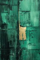Dit moderne kunstwerk combineert rijke groene tinten met een onverwacht vleugje goud, waarbij de gelaagde textuur van verweerd hout een abstracte en organische uitstraling geeft. De subtiele imperfecties en contrasterende kleuren symboliseren de harmonie tussen verval en elegantie. Dit stuk is een perfecte keuze voor een hedendaags interieur dat een gedurfd, artistiek statement wil maken met natuurlijke elementen en een vleugje luxe.