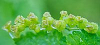Groenrode stromen na regen - een prachtige groenrode stromen landschap macro foptograaf . De bessen hebben hun bloemen nog aan de bovenkant en de regendruppels bedekken ze. Het zicht is op ooghoogte zodat de kijker elk detail van de kleine groenrode stromen kan zien. De focus ligt alleen op het voorplan van de groenrode stroompjes en…