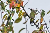 Groene Specht in een kersenboom in een tuin in Noord-Nederland / Green Woodpecker in a cherry-tree in a backyard in the North of the Netherlands
