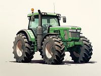 De groene kleur van de tractor is levendig en vriendelijk, met nuances die diepte en dimensie toevoegen. De grote wielen zijn prominent aanwezig, met wellicht enkele oranje details voor een speels contrast. De lijnen en vormen van de tractor stralen een gevoel van eenvoud en kindvriendelijkheid uit.