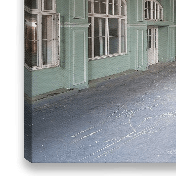 Koop de foto Groene Verlaten Gymzaal. van Roman Robroek - Foto's van Verlaten Gebouwen als print op canvas, aluminium dibond, (ingelijste) fotoprint, behang en ArtFrame. Voor jou op maat geprint in Fine-Art kwaliteit.