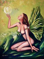 Dit nostalgische olieverfschilderij is niet alleen voor absintliefhebbers, maar is ook bedoeld om te vertellen over het bestaan van natuurgeesten en elfen. Het is 100% handgeschilderd en handgesigneerd!