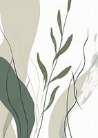 Een abstracte illustratie met motieven van groene bladeren in verschillende vormen en tinten
