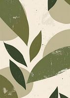 Een abstracte illustratie met motieven van groene bladeren in verschillende vormen en tinten