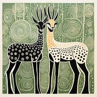 Koop de illustratie Groene antilopen in volkskunst van Aloke Design als print op canvas, aluminium dibond, (ingelijste) fotoprint, behang en ArtFrame. Voor jou op maat geprint in Fine-Art kwaliteit.