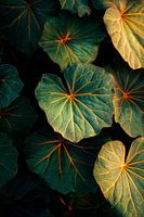 Zachte groene tinten en delicate bladstructuren stralen rust en nabijheid tot de natuur uit. Het subtiele lichtspel op de grote bladeren creëert een harmonieuze sfeer. Dit kunstwerk geeft een frisse, levendige toets aan elke keuken of woonkamer en nodigt je uit om de schoonheid van de natuur in huis te halen.