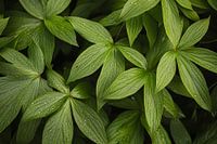 Een dichte verzameling levendige groene bladeren trekt de kijker een natuurlijke oase binnen. Hun delicate, filigrane structuren en de frisse dauwdruppels geven de kamer een rustgevende sfeer. Dit kunstwerk is de perfecte toevoeging aan een woonkamer of keuken om de natuur in huis te halen en een harmonieuze sfeer te creëren.