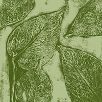 Gemengde media botanische collage. Monotype print van echte bloemen, bladeren of planten gecombineerd met texturen.