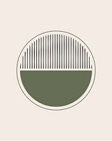 Abstracte minimalistische illustratie van een groene halve cirkel, zwarte lijnen en een dunne omlijning in het groen. De achtergrond is licht beige.