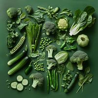 Dit aantrekkelijke arrangement bevat een verscheidenheid aan groene groenten, perfect gevangen in hun versheid en levendigheid. Van broccoli en courgettes tot erwten en spinazie, elke groente is zorgvuldig geplaatst om zijn unieke textuur en vorm te benadrukken. Ideaal voor keuken- en voedselliefhebbers die waarde hechten aan gezonde en esthetische voedselpresentaties.