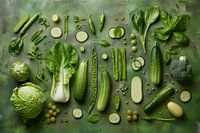 Dit aantrekkelijke arrangement bevat een verscheidenheid aan groene groenten, perfect gevangen in hun versheid en levendigheid. Van broccoli en courgettes tot erwten en spinazie, elke groente is zorgvuldig geplaatst om zijn unieke textuur en vorm te benadrukken. Ideaal voor keuken- en voedselliefhebbers die waarde hechten aan gezonde en esthetische voedselpresentaties.