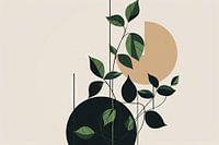 Deze compositie combineert de levendigheid van groene bladeren met geometrische vormen en lijnen. De zachte beige en bruine tinten op de achtergrond creëren een rustgevende sfeer, terwijl de fijne zwarte contouren en cirkels het werk een moderne elegantie geven. Perfect voor natuurliefhebbers die een vleugje hedendaagse kunst aan hun huis willen toevoegen. Dit stuk brengt rust en stijl in elke kamer.
