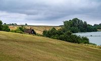 Groene heuvels en een meertje op het Deense platteland rond Ugledige, Seeland, Denmark