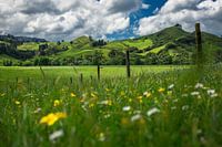 De diepgroene heuvels op de Coromandel Peninsula, op het Noordereiland van Nieuw-Zeeland.