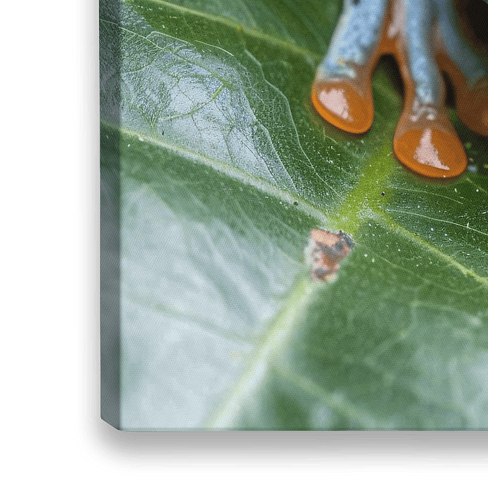 Breng de natuur naar binnen met deze prachtige foto van een groene kikker op een blad. Perfect voor in de slaapkamer of keuken om een vleugje rust en ontspanning toe te voegen.
