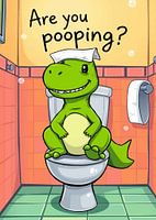 Groene Little Dino zittend op toilet in badkamer met grappige humor "Are You Pooping"