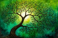 Dit is een digitaal kunstwerk van een groene levensboom. Mooie rustgevende groene achtergrond. Een spiritueel en rustgevend beeld geschikt voor bijvoorbeeld een yoga- of meditatie ruimte.