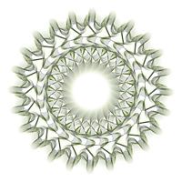 Het kunstwerk toont een groene lijnenkrans op een witte achtergrond. De groene lijnen vormen een cirkelvormig patroon dat een krans weergeeft. Ze zijn subtiel en elegant, waardoor een gevoel van harmonie en balans ontstaat.