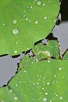 Koop de foto Groene lotus bladeren met druppels in een vijver water van Tony Vingerhoets als print op canvas, aluminium dibond, (ingelijste) fotoprint, behang en ArtFrame. Voor jou op maat geprint in Fine-Art kwaliteit.