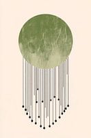 Een zachte, olijfgroene maan zweeft majestueus boven een netwerk van dunne, verticale lijnen die doen denken aan vallende druppels. Deze filigraandraden eindigen in donkere stippen die een harmonieus ritme creëren. De kale achtergrond versterkt het mystieke aura, terwijl de compositie de eenvoud van natuur en kunst in perfecte harmonie…