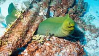 Groene murene op Kliene Curaçao. Deze was groter dan 2 meter en vrij an het zwemmen door de rif.