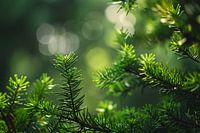 Dit serene ontwerp vangt de schoonheid van de natuur in een close-up van naaldbomen, badend in zacht zonlicht. De groene tinten in combinatie met de subtiele lichtinval creëren een rustgevende en uitnodigende sfeer, perfect voor een ruimte waar je tot rust wilt komen. Dit beeld, dat realistisch en minimalistisch van aard is, kan een vleugje natuurlijke pracht toevoegen aan zowel moderne als klassieke interieurs. Een perfecte keuze voor iedereen die de rustgevende kracht van de natuur in hun huis wil ervaren.