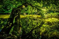 Groene natuur Spiegeling van boom en takken in het meer in de zomer in Blechhammer in Kaiserslautern Duitsland