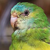 Digitaal kunstwerk van een groene parkiet. Naast dit vierkante model is er ook close-up van dit werk (in landscape) in mijn webshop te bestellen.