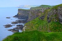 Koop dit landschapskunstwerk Groene, ruige kustlijn van Noord-Ierland met mysterieuze ruïne van een kasteel van Studio LE-gals op canvas, aluminium dibond, (ingelijste) fotoprint, behang en ArtFrame, op maat geprint in Fine-Art kwaliteit.