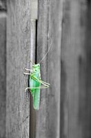 Deze sprinkhaan zat in mijn tuin op mijn hekje en is ongeveer 5 centimeter groot. Dit is een vrouwtje; dat zie je aan de achterzijde aan de legboor die als een sabel omhoog staat. Mooi groen dier met veel details.