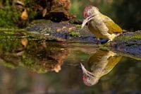 Koop dit vogel kunstwerk Groene specht weerspiegeld in het water van Ron Buist op canvas, aluminium dibond, (ingelijste) fotoprint, behang en ArtFrame, op maat geprint in Fine-Art kwaliteit.