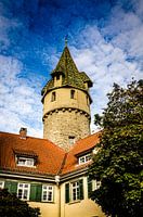 Groene toren in de oude stad van Ravensburg in Opper-Zwaben