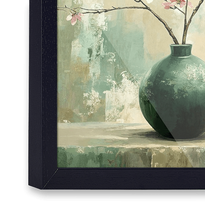 Een prachtig minimalistisch kunstwerk met een serene uitstraling. Dit ontwerp toont een eenvoudige, maar elegante groene vaas met bloesemtakken die rust en harmonie uitstralen. Ideaal voor elke ruimte waar een vleugje natuur en verfijning gewenst is, zoals een slaapkamer, hal of woonkamer. De zachte kleuren en de subtiele details maken…