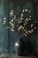 Koop dit bloemen kunstwerk Groene vaas met witte bloesem van Imperial Art House op canvas, aluminium dibond, (ingelijste) fotoprint, behang en ArtFrame, op maat geprint in Fine-Art kwaliteit.