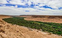 Groene vallei in de woestijnvlakte in
