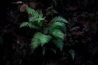 Deze varen vond ik in de berm vlakbij mijn woonplaats. De varen bevond zich op een donker gedeelte en was omgeven door afgevallen verdorde bladeren. Een zacht natuurlijk licht viel op de groene bladeren van de varen.