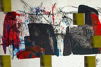 Abstracte afbeelding met groene vierkanten, een abstract motief met harmonieuze kleurvlakken. Een motief voor woon-, werk- of wachtkamers.