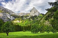 Groene weide en steile rotsen in de Ammergauer Alpen van Andreas Föll
