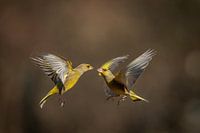 Op een zonnige dag in de late winter, vroege voorjaar, vliegen Groenlingen op om elkaar weg te jagen bij een voederplek. Het lijkt op een dans in de lucht.