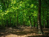 Langs oude bomen met frisse groene bladeren wandelen, heerlijk verfrissend en gezond voor je