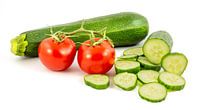Groente (komkommer, courgette, tomaat) geïsoleerd op een witte achtergrond