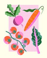 Koop de illustratie Groenten van Melissa Donne op canvas, aluminium dibond, (ingelijste) fotoprint, behang en ArtFrame, op maat geprint in Fine-Art kwaliteit.