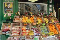 Een groentemarkt in de wijk Montmartre in Parijs, beroemd door de film Le fabuleux destin d'Amélie Poulain, waar het jonge meisje haar groenten kocht.