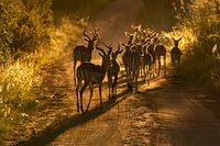 Een mooie groep impala's liep hier in het mooie tegenlicht van de ondergaande zon. Dit gaf een heel sfeervol beeld van deze dieren in de mooie natuur van Zuid-Afrika.
